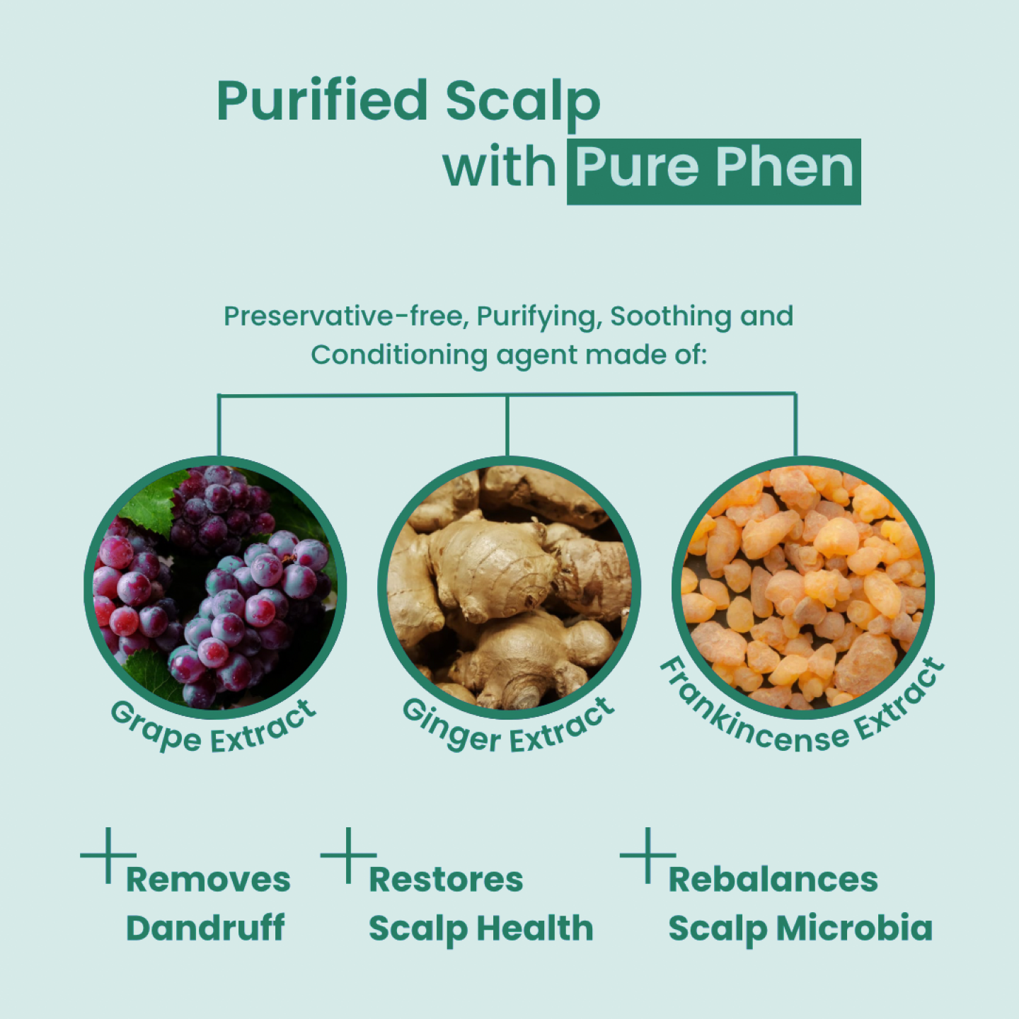 Enriched with PURE-PHEN, a unique blend of ginger root, frankincense resin, and grapefruit - nature's answer to a healthy scalp and dandruff control